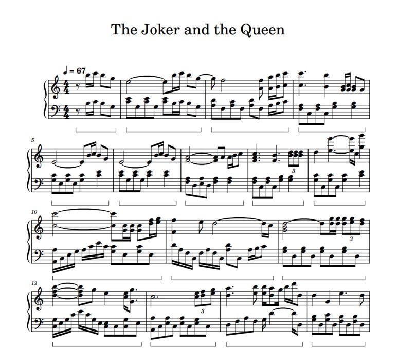 An intermediate level piano arrangement of "The Joker and the Queen" by Ed Sheeran.